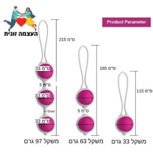 הערכה הנמכרת אצלנו מכילה כדורים בשלושה גדלים ובמשקלים מתקדמים, על מנת להדריג את התרגול אצל כל אשה לפי מוכנותה, עדינות האיזור והצורך.