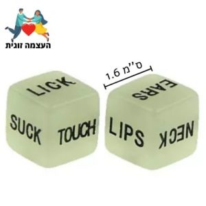 -24%קוביות משחק רומנטי מסעיר לזוגות נשואים מתקדמים עם איורים (זוהר בחושך). משחקים רומנטים בין בני זוג מהנים במיוחד ומציתים מחדש את אש התשוקה של בני זוג. שימוש בקוביות תשוקה מעצימים את הקשר הזוגי דרך האישות, בנגיעה בחושים שונים, תעוזה ותקשורת מעבר למילים. קוביות רומנטיקה חושית מסדרא זאת זוהרים בלילה על מנת לא להפריע לזרימה המינית. סידרא קוביות תשוקה זאת צנועה, אך כולל קוביה נוספת (מעבר לשתי הקוביות עם המילים ופעילויות) עם איורים של תנוחות יותר נועזות לזוגות מתקדמים.